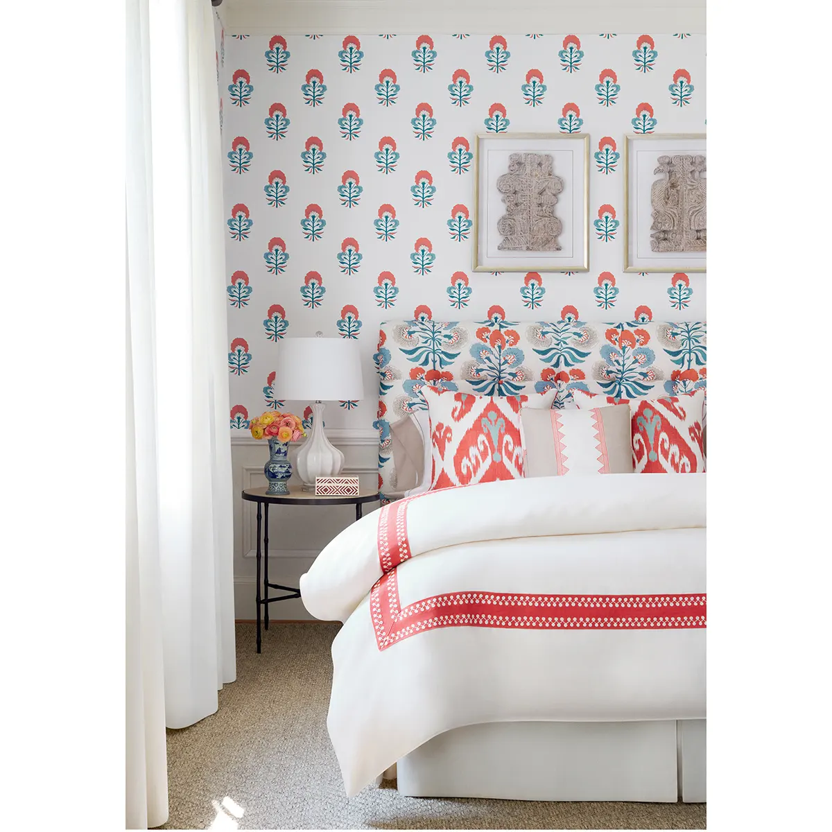 Tybee Bud to czysta i uproszczona interpretacja tkaniny Tybee Tree. Ta tapeta ma uroczy pączek kwiatowy w małej skali z otwartą przestrzenią.