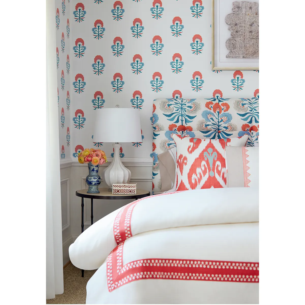 Tybee Bud to czysta i uproszczona interpretacja tkaniny Tybee Tree. Ta tapeta ma uroczy pączek kwiatowy w małej skali z otwartą przestrzenią.