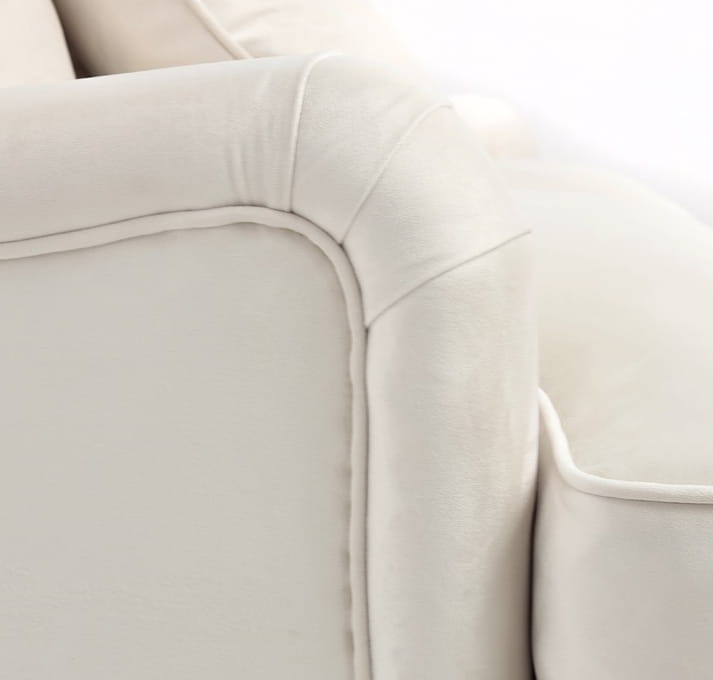 Wszystkie poduszki, zarówno oparciowe, jak i siedziskowe, posiadają zdejmowane pokrowce, co ułatwia utrzymanie mebla w czystości. Sofa Brighton pięknie prezentuje się zarówno w tkaninach typu velvet, jak strukturalnych tkaninach. Jest to mebel średniej wielkości. Posiada dość głębokie siedzisko, co wynika z roli poduszek, które pełnią również funkcję oparcia.