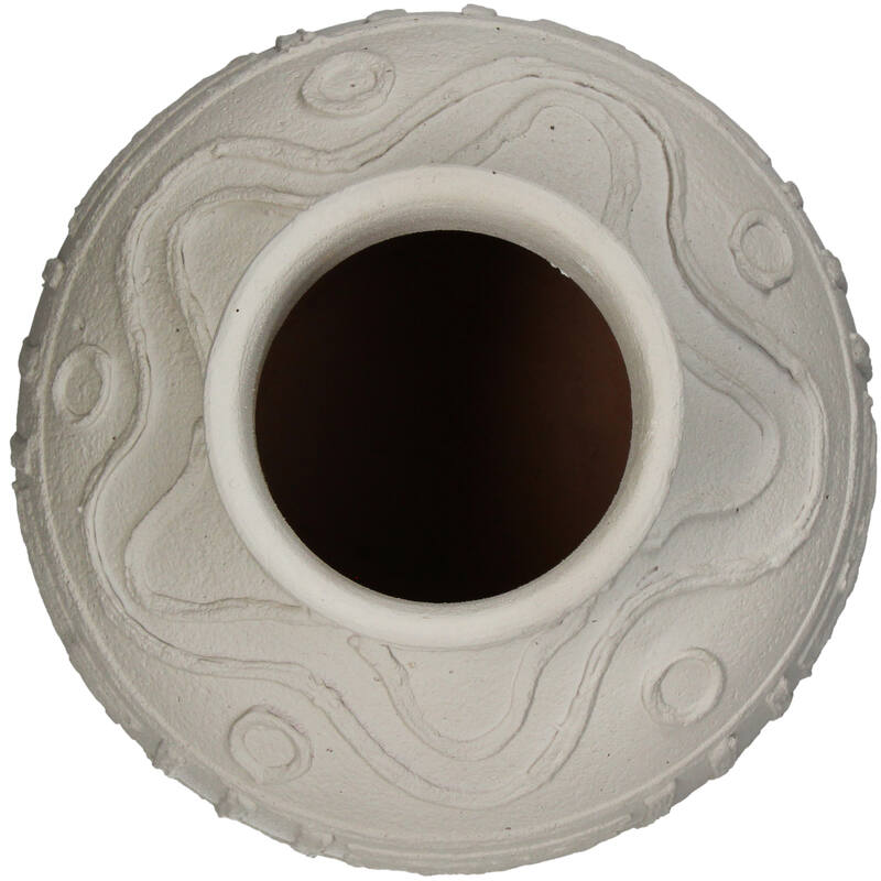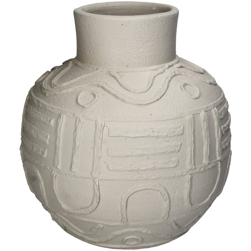 Wazon Fresco zachwyca swoją ręcznie wykonana fakturą w formie delikatnego reliefu, który nadaje mu charakteru i głębi. Geometryczne wzory przeplatają się z organicznymi kształtami, tworząc harmonijną całość, która świetnie wpisuje się w nowoczesne trendy wnętrzarskie. Naturalny beżowy odcień nadaje mu ciepła i sprawia, że wazon doskonale współgra z każdym stylem aranżacji – od boho po minimalistyczny.