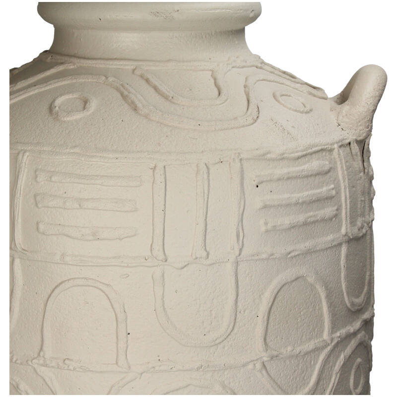 Wazon zachwyca ręcznie wykonanym reliefem, inspirowanym geometrycznymi i organicznymi wzorami. Wzory te nadają mu artystycznego charakteru, podkreślając jego unikatowość. Jasnobeżowy odcień sprawia, że jest to dekoracja, która subtelnie współgra z wnętrzami w różnych stylach, od rustykalnych po minimalistyczne. Wykonany z trwałej i solidnej terakoty, wazon jest nie tylko piękny, ale również wytrzymały.