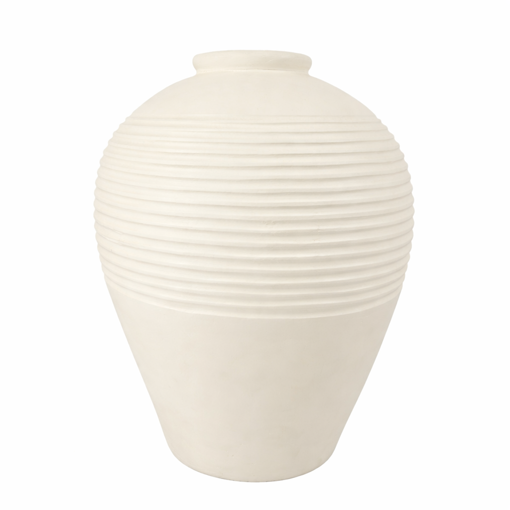 Dzięki swoim proporcjom i neutralnej kolorystyce, wazon Island sprawdzi się jako naczynie na suche kompozycje roślinne, trawy pampasowe czy gałązki, ale również jako samodzielna dekoracja, która wypełni przestrzeń światłem i prostotą. Szeroka podstawa gwarantuje stabilność, a oryginalna faktura przyciąga wzrok i dodaje pomieszczeniu charakteru.