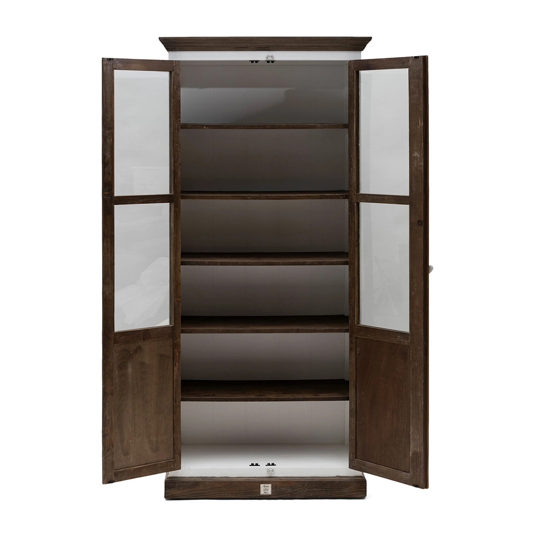 Dzięki swojej imponującej wysokości (220 cm) oraz szerokości (95 cm) witryna wspaniale prezentuje się w salonie, jadalni czy gabinecie. Jest to mebel, który znakomicie wpisuje się w aranżacje inspirowane stylem francuskim, rustykalnym czy shabby chic. Jasna kolorystyka oraz naturalne drewno doskonale komponują się z bielą, beżem oraz innymi neutralnymi barwami.