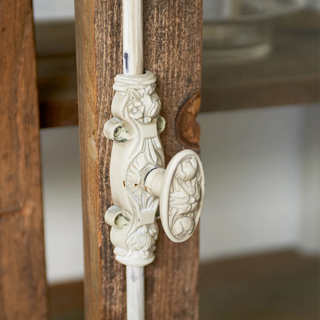 Witryna Driftwood Riviera Maison to nie tylko ozdoba, ale także praktyczne miejsce do przechowywania. Dzięki przeszklonym drzwiczkom możesz pięknie wyeksponować swoje ulubione dekoracje, zastawę stołową czy książki. Mebel posiada solidne metalowe uchwyty w stylu retro, które podkreślają jego charakter. Ręcznie rzeźbione detale oraz oryginalne okucia dodają witrynie wyjątkowego wdzięku.